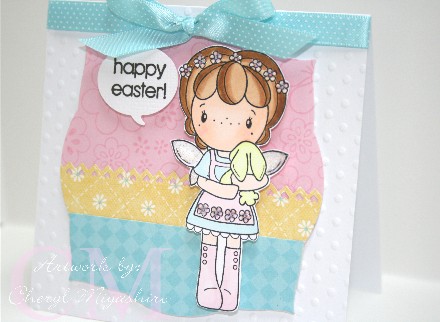 The other day I found a bag filled with old EK Success punches that were my samples from back in the days and I found a little bunny punch. So I punched out little pink bunnies and stuck one on this card and decorated the inside of the card. Sorry, I forgot to take a picture of the inside of the card. But the inside says, Happy Easter honey bunny. All stamps are Dandelion Designs.Thanks for stopping by today and hope you're having a great Tuesday!!!